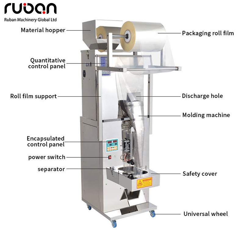 Данное оборудование представляет собой универсальную автоматическую машину для упаковки гранулированных материалов, специально разработанную для упаковки в небольшие пакеты таких материалов, как чай, фармацевтические капсулы, детали оборудования и пищевые гранулы. Она объединяет основные функции, включая автоматическое изготовление пакетов, точное дозирование, запайку и резку, отличается простотой в эксплуатации и регулируемыми параметрами, и подходит для нужд упаковки в пищевой, фармацевтической, машиностроительной и других отраслях промышленности.