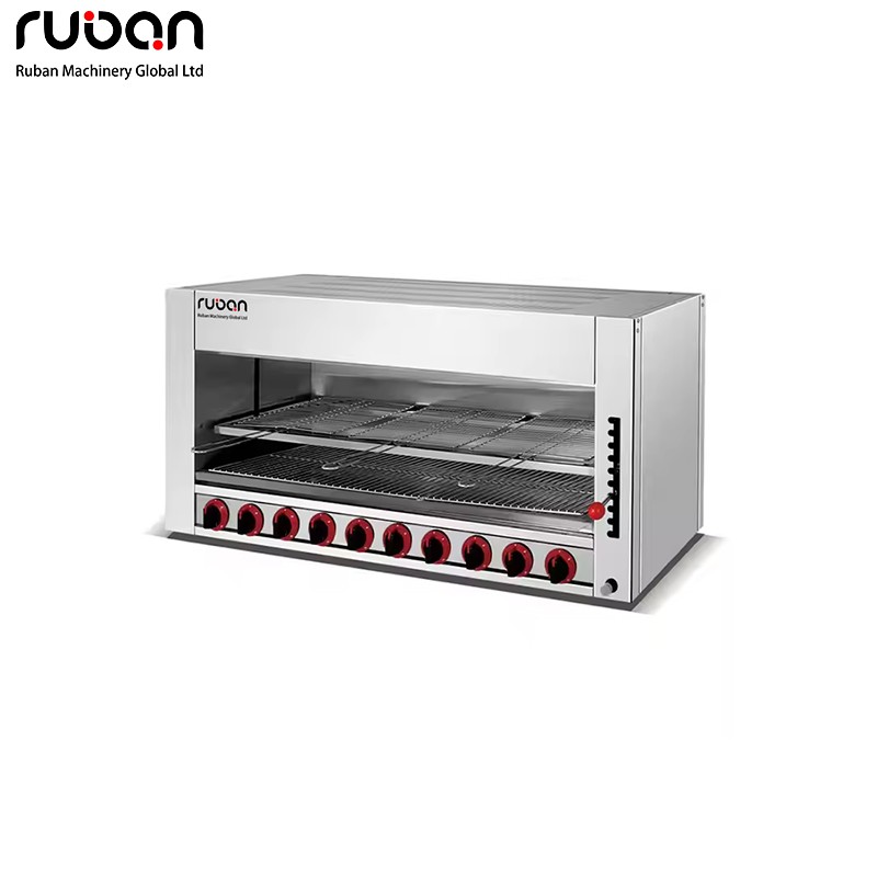 Этот мощный коммерческий газовый гриль-саламандра предназначен для профессионального приготовления пищи при высоких температурах. Изготовленный из прочной нержавеющей стали, он оснащен несколькими независимыми горелками, регулируемой высотой и двойным управлением температурой для точного обжаривания, плавления и подрумянивания. Идеально подходит для ресторанов, отелей и предприятий общественного питания, поддерживает как сжиженный газ (LPG), так и природный газ (NG).
