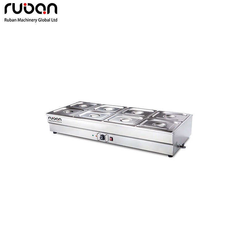 Эта промышленная электрическая водяная баня изготовлена из толстой, прочной нержавеющей стали и оснащена точным термостатом для равномерного подогрева пищи. Удобный сливной кран упрощает слив воды, а продуманная конструкция обеспечивает надежную и простую эксплуатацию. Идеально подходит для ресторанов, отелей, кафетерий и предприятий общественного питания. Доступны варианты с 2, 4, 6 и 8 лотками, а также опциональный стеклянный защитный экран для обеспечения гигиены в режиме самообслуживания.