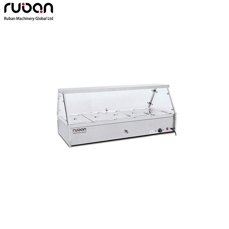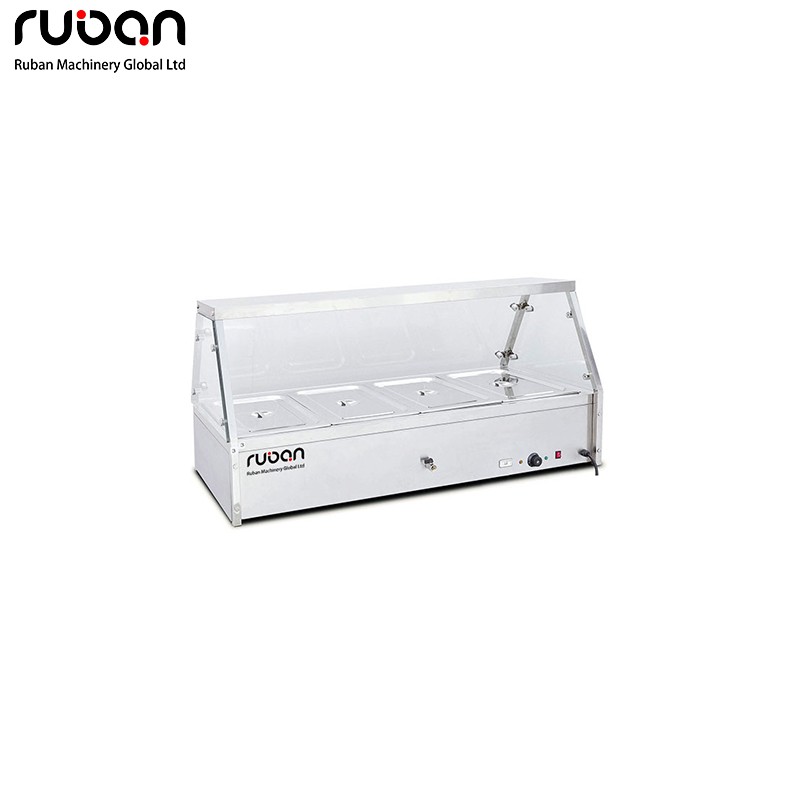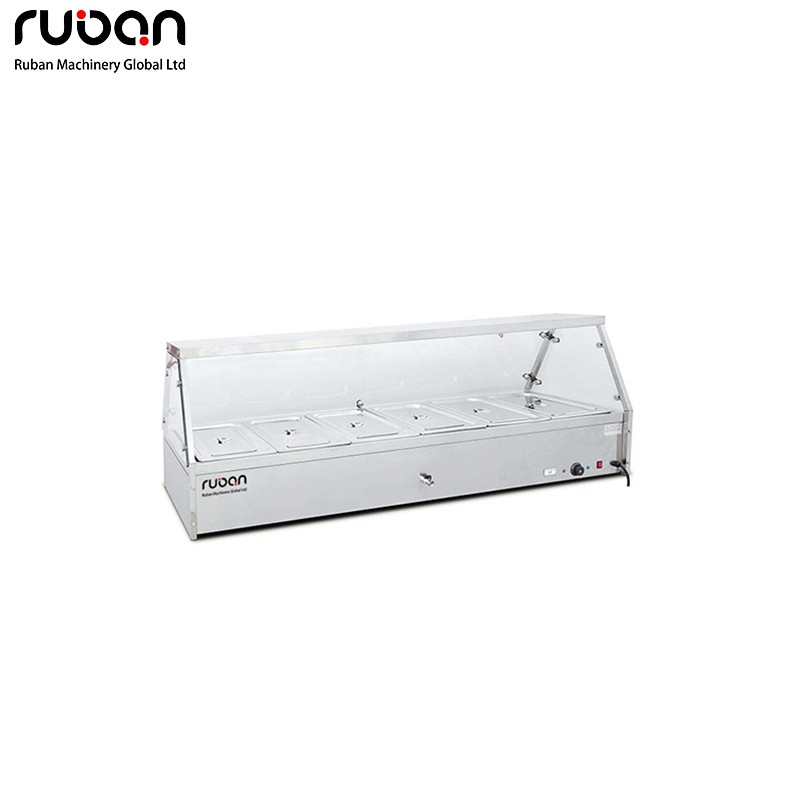 Эта промышленная электрическая водяная баня изготовлена из прочной нержавеющей стали и оснащена изогнутым стеклянным защитным экраном для гигиеничной демонстрации продуктов. Благодаря точно регулируемому термостату и удобному сливному крану она легко поддерживает идеальную температуру для подачи блюд. Доступна в размерах на 3/4/5/6 противней, идеально подходит для ресторанов, буфетов и кейтеринга.