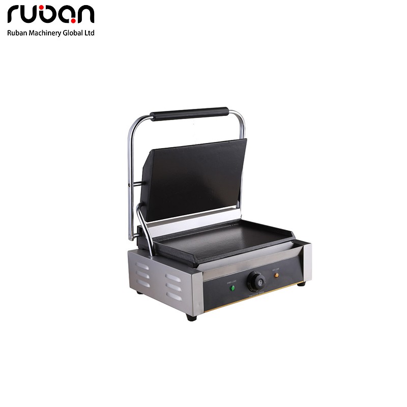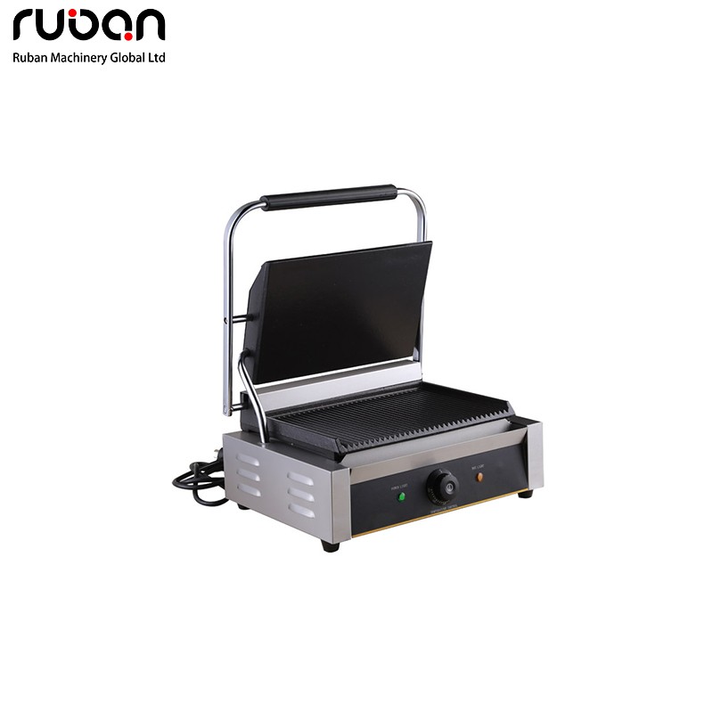 Этот коммерческий электрический гриль для панини имеет прочный корпус из нержавеющей стали и чугунные пластины с антипригарным покрытием. Он оснащен одним регулятором температуры с индикаторными лампочками, обеспечивающими точное и равномерное распределение тепла для идеального приготовления панини, бургеров, стейков и сэндвичей. Эргономичная ручка и компактная конструкция для установки на столешницу делают его идеальным для оживленных ресторанов, кафе, фудтраков и кейтеринговых компаний, сочетая в себе долговечность и эффективность.