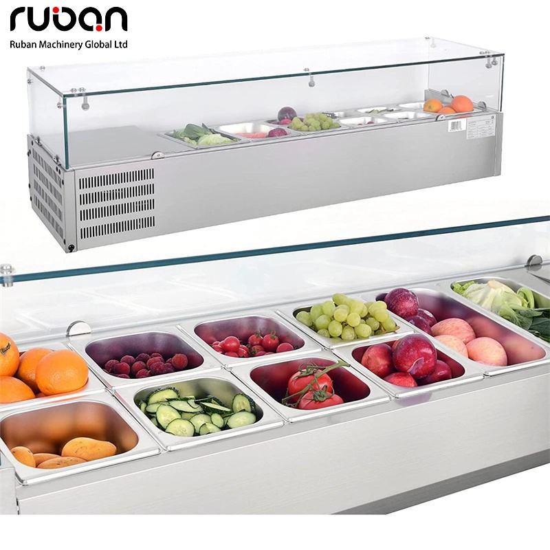 Эта настольная холодильная витрина для салатов со стеклянной крышкой специально разработана для предприятий общественного питания, объединяя функции охлаждения и сохранения свежести ингредиентов, сортировки продуктов и интуитивно понятного отображения. Основной корпус изготовлен из пищевой нержавеющей стали, что обеспечивает гигиеничность и долговечность. Прозрачная стеклянная крышка предотвращает попадание пыли и загрязнений, а многосекционные лотки для ингредиентов удовлетворяют потребности в сортировке продуктов. Точная система контроля температуры поддерживает свежесть ингредиентов, а цифровая панель управления температурой проста в использовании. Компактные размеры позволяют разместить оборудование непосредственно на рабочей поверхности, что подходит для небольших продуктовых магазинов, кафе и других мест, эффективно удовлетворяя двойные потребности в приготовлении и демонстрации салатов.
