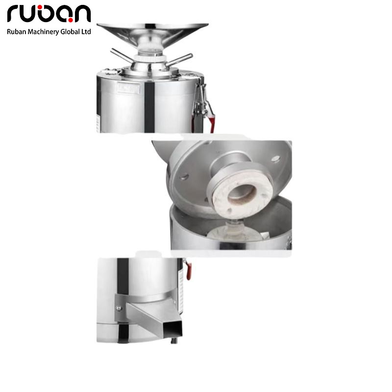 Данное оборудование представляет собой инновационное оборудование для мокрого измельчения, используемое для мокрой обработки кунжута, арахиса, перца, риса, сои, кукурузы и других зерновых материалов, а также для мокрого измельчения некоторых материалов в пищевой промышленности. Когда обжаренные семена кунжута и арахис могут быть непосредственно измельчены в кунжутную пасту, арахисовое масло, или после очистки, замачивания и других предварительных обработок с использованием воды, материал под действием центробежной силы перемещается относительно друг друга между верхним и нижним песчаными лотками, так что материал перемещается вдоль плоскости песчаного лотка изнутри наружу, от крупного к мелкому помолу.