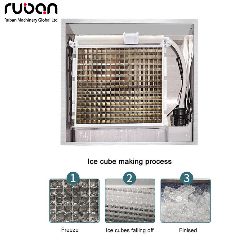 4. Сценарии применения: Подходит для коммерческих предприятий с большим потреблением льда, таких как сети общественного питания, крупные отели, буфеты и предприятия по переработке напитков. Обеспечивает стабильное производство большого количества кубиков льда и адаптируется к потребностям крупных предприятий.