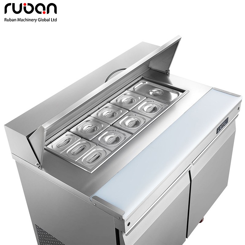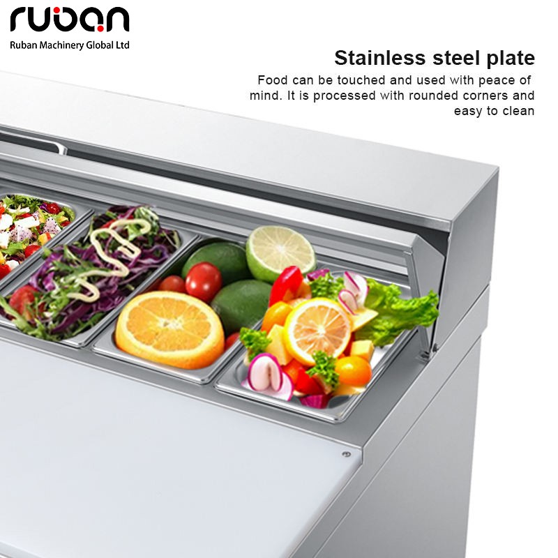 Этот коммерческий стол для приготовления салатов специально разработан для приготовления салатов и хранения ингредиентов в предприятиях общественного питания. Изготовленный из пищевой нержавеющей стали, он прочный, долговечный и легко моется. Стол имеет четкую зонированную конструкцию: в холодильном отделении можно хранить различные овощи, фрукты и соусы, а благодаря системе точного контроля температуры он обеспечивает длительную свежесть. Рабочая зона имеет ровную и просторную столешницу, которая подходит для всех видов приготовления салатов и отвечает потребностям эффективной подготовки блюд на кухне. Благодаря гладким, закругленным углам без заусенцев, он предотвращает случайные столкновения и травмы, что делает его идеальным помощником для ресторанов быстрого питания, небольших закусочных и буфетных ресторанов.