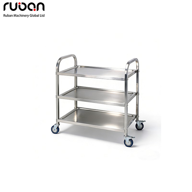Эта серия сервировочных тележек из нержавеющей стали включает в себя трехъярусные и двухъярусные модели с открытыми полками, все они оснащены универсальными колесами и служат базовым оборудованием для транспортировки ингредиентов и посуды в сфере коммерческого кейтеринга.